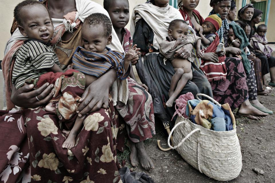 Women and children wait for care at an outpatient treatment center in Lerra village, Wolayta, Ethiopia, on June 10, 2008. (Jose Cendon/Bloomberg News)